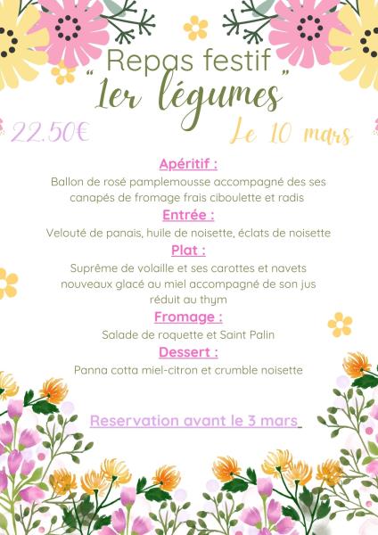 Les Templitudes "Les Moulins de l'Orge" > Actualités > Les repas festifs de mars Les repas festifs de mars Publiée le 09/03/2026 Voici les repas festifs du mois de mars au plaisir de vous y retrouver 😁